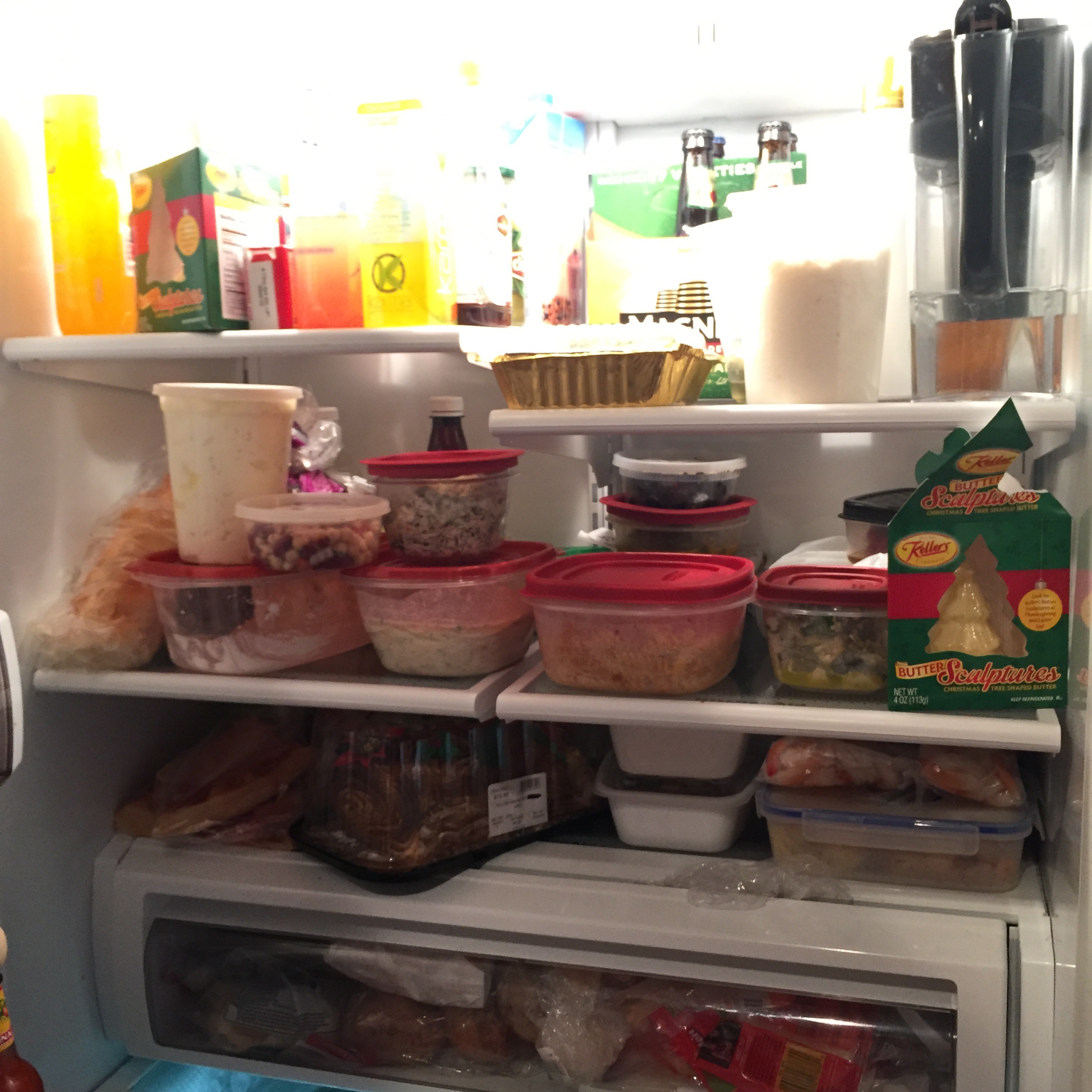 This is the upstairs fridge, the downstairs fridge is even more packed. I need to figure out who we are going to give all these leftovers to, because I am the only one in the house who usually eats leftovers, and starting tomorrow, I will be eating none of them. So they are taking up precious 21 Day Approved meal spaces. (How dare they!)